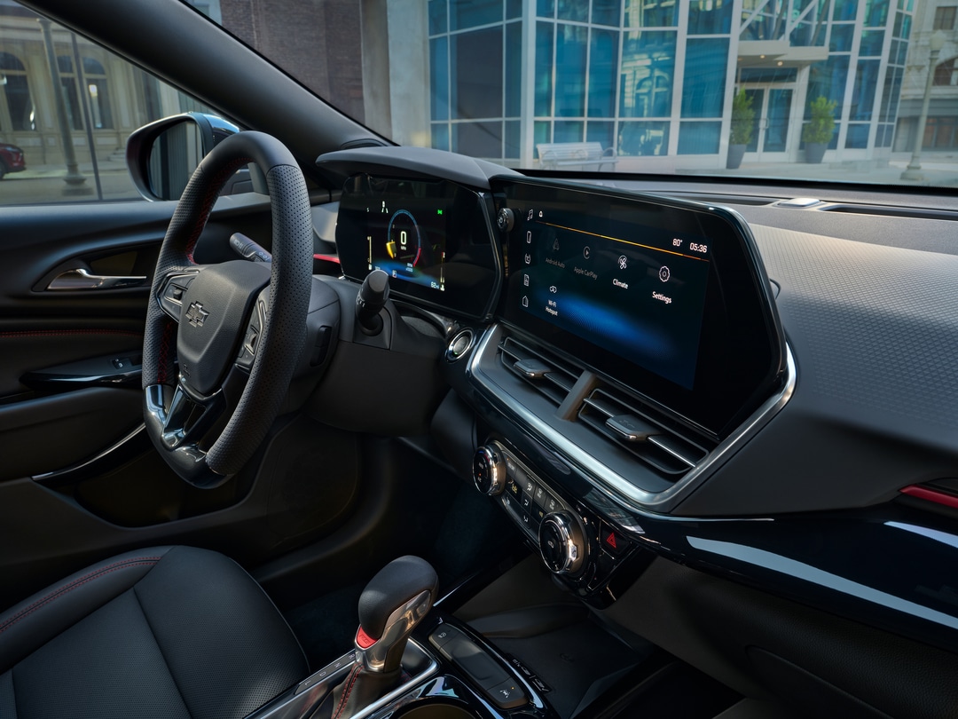 Upgrade the looks of your Chevy Trax with 18-inch machined wheels with black accents, a black honeycomb grille with RS badging, and red interior accents.